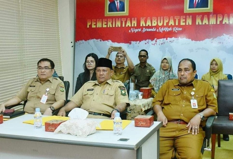 Beritatuan.com, Bangkinang – Pj Bupati Kampar Hambali SE,MH yang di wakili Pj. Sekretaris Daerah Drs.Yusri M.Si mengikuti rapat koordinasi (rakor) pengendalian inflasi daerah yang digelar oleh pemerintah pusat, Kementerian Dalam Negeri Republik Indonesia (Kemendagri RI) secara via virtual melalui zoom meeting setiap minggunya. Rakor inflasi secara virtual itu dilaksanakan di ruangan zoom meeting lantai II kantor Bupati Kampar, pada Senin (08/01/2024).