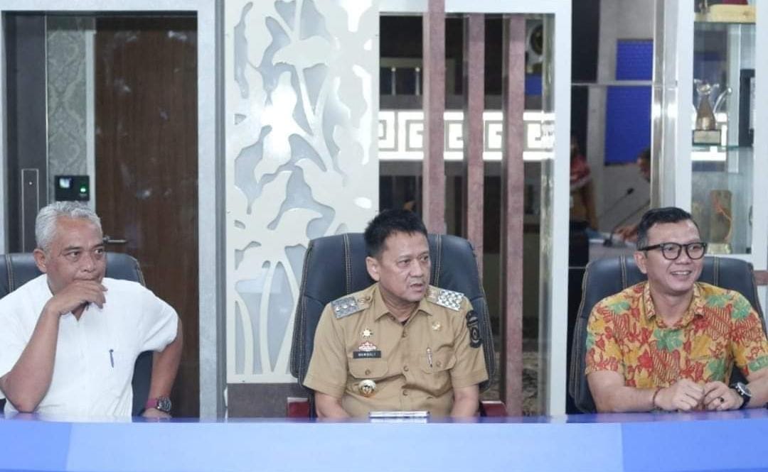 Beritatuan.com, Bangkinang – Pj Bupati Kampar Hambali, SE.M.Ba.MH menyaksikan penandatanganan MoU antara FKDM (Forum Komunikasi Dalam Masyarakat) dan Bawaslu (Badan Pengawas Pemilihan Umum) yang berlangsung di ruang rapat lantai II kantor Bupati Kampar Bangkinang Kota Kabupaten Kampar, Senin (22/01/2024).