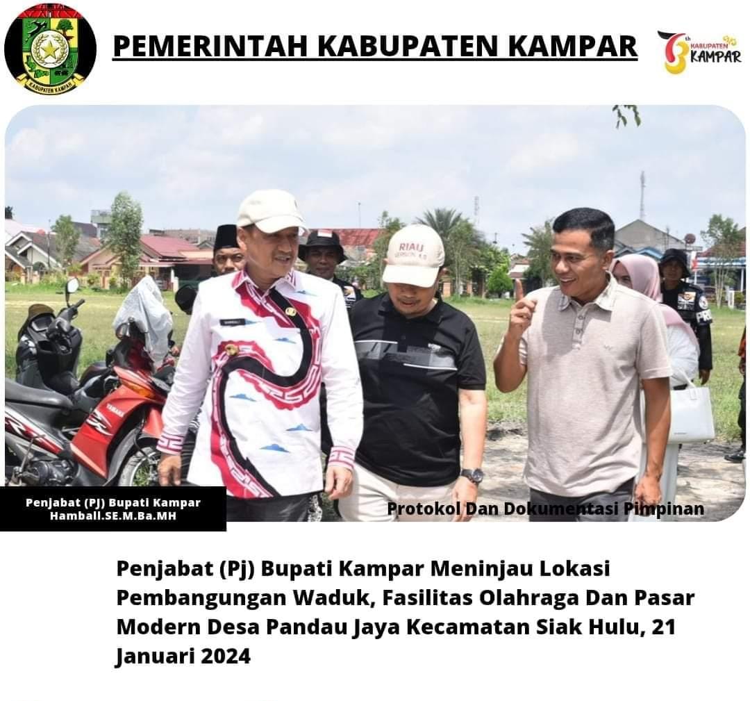 Penjabat (PJ) Bupati Kampar Hambali.SE.M.Ba.MH menyampaikan, pasca peninjauan fasum ini yang berlokasi dilapangan Kopkar Desa Pandau Jaya Kecamatan Siak Hulu dan yang nantinya akan dijadikan Fasilitas olahraga dan pasar modern.