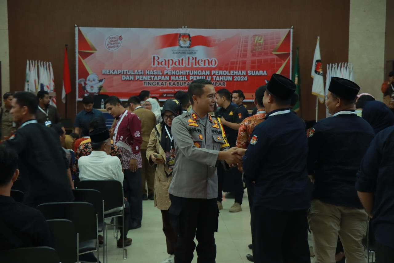 BANGKINANG – Polres Kampar mempersiapkan pengamanan melekat saat pembukaan Rapat Pleno Rekaputasi Penghitungan Perolehan Suara dan Penetapan Hasil Pemilu 2024 yang digelar oleh Komisi Pemilihan Umum (KPU) Kabupaten Kampar.