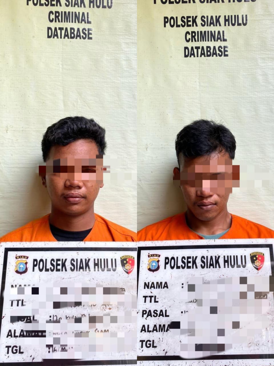 SIAKHULU- Dua pelaku pengeroyokan yaitu JU (25)dan AR (19) warga Desa Lubuk Siam, Kecamatan Siak Hulu, Kabupaten Kampar ditangkap Polsek Siak Hulu karena mengeroyok Mashari (41) yang juga warga Desa Lubuk Siam, Sabtu (16/3/2024) sekira pukul 01.00 WIB.