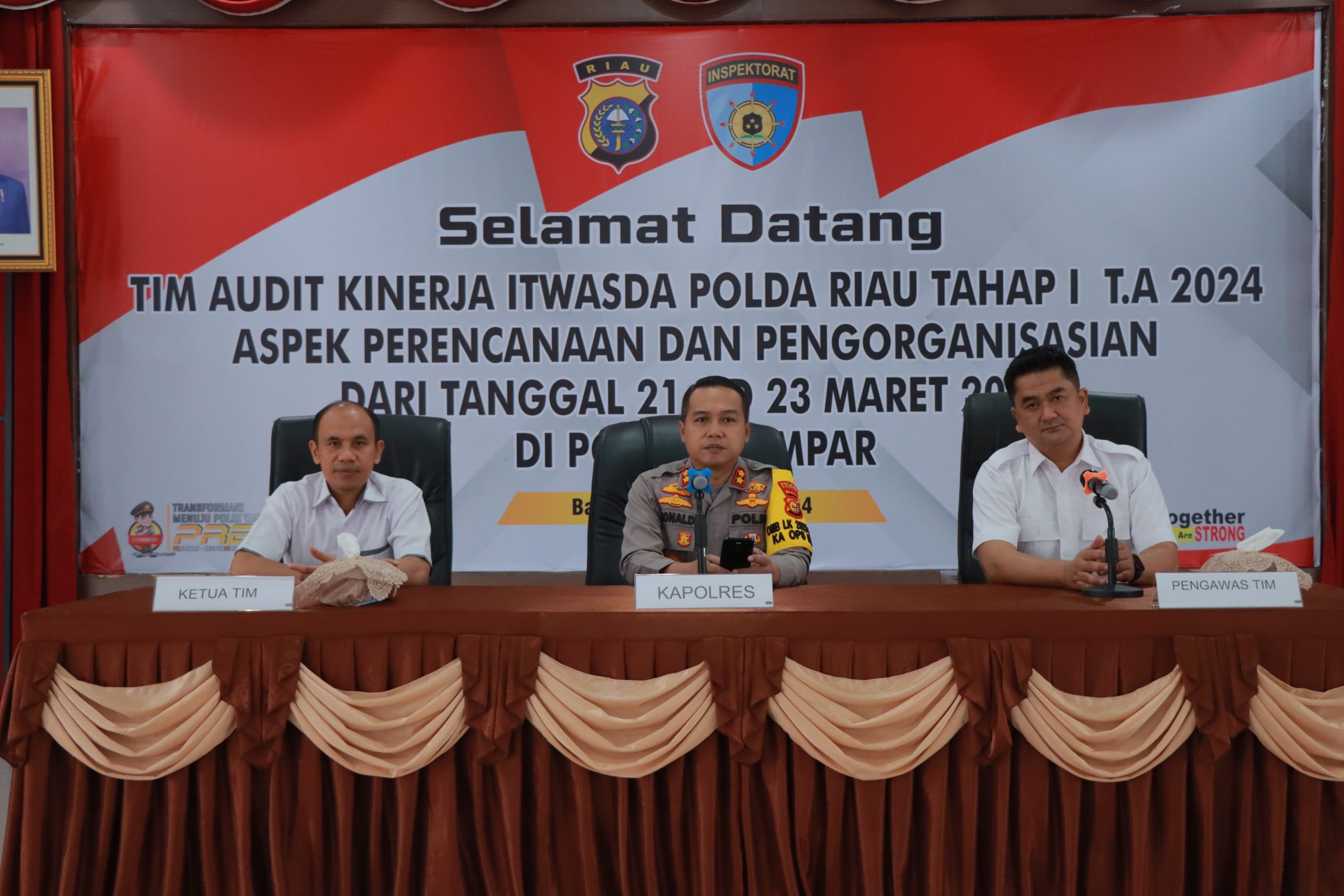 Kapolres Kampar menyampaikan, sasaran audit Itwasda Polda Riau terhadap Polres Kampar dan 12 Polsek Jajaran Polres Kampar.