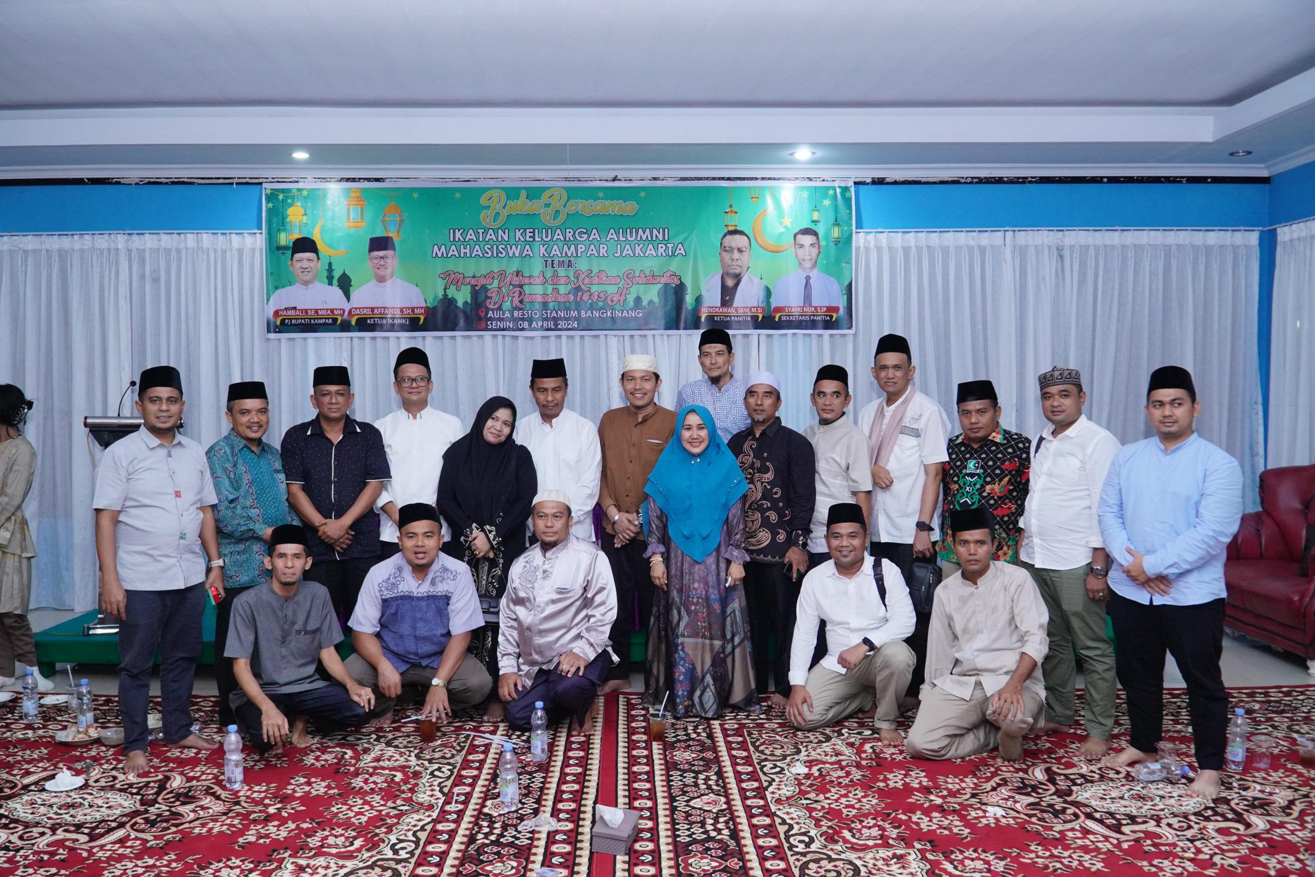 BANGKINANG KOTA – Pj Bupati Kampar diwakili Plh Sekda Kampar Ahmad Yuzar, S.Sos, MT bersama pengurus Ikatan Keluarga Alumni Mahasiswa Kampar Jakarta (IKAMKJ) menyerahkan santunan anak yatim sekaligus buka bersama di Aula Resto Stanum Bangkinang Kota, Senin (8/4/2024).