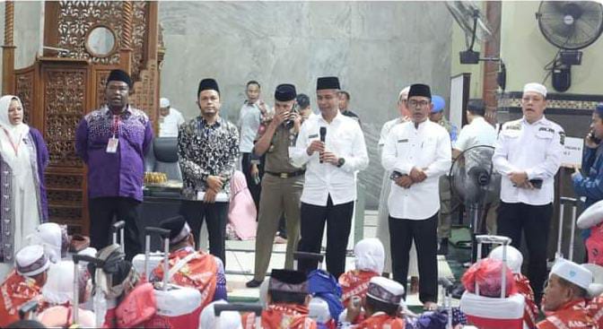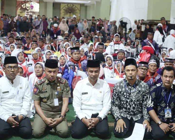 BANGKINANG – Pj Bupati Kampar yang diwakili oleh Penjabat Sekretaris Daerah Ahmad Yuzar, S.Sos.MT secara resmi melepas sebanyak 442 Calon Jema’ah Haji (CJH) Kabupaten Kampar 2024 di Markas Islamic Center Bangkinang Kota, rabu (15/5/24).