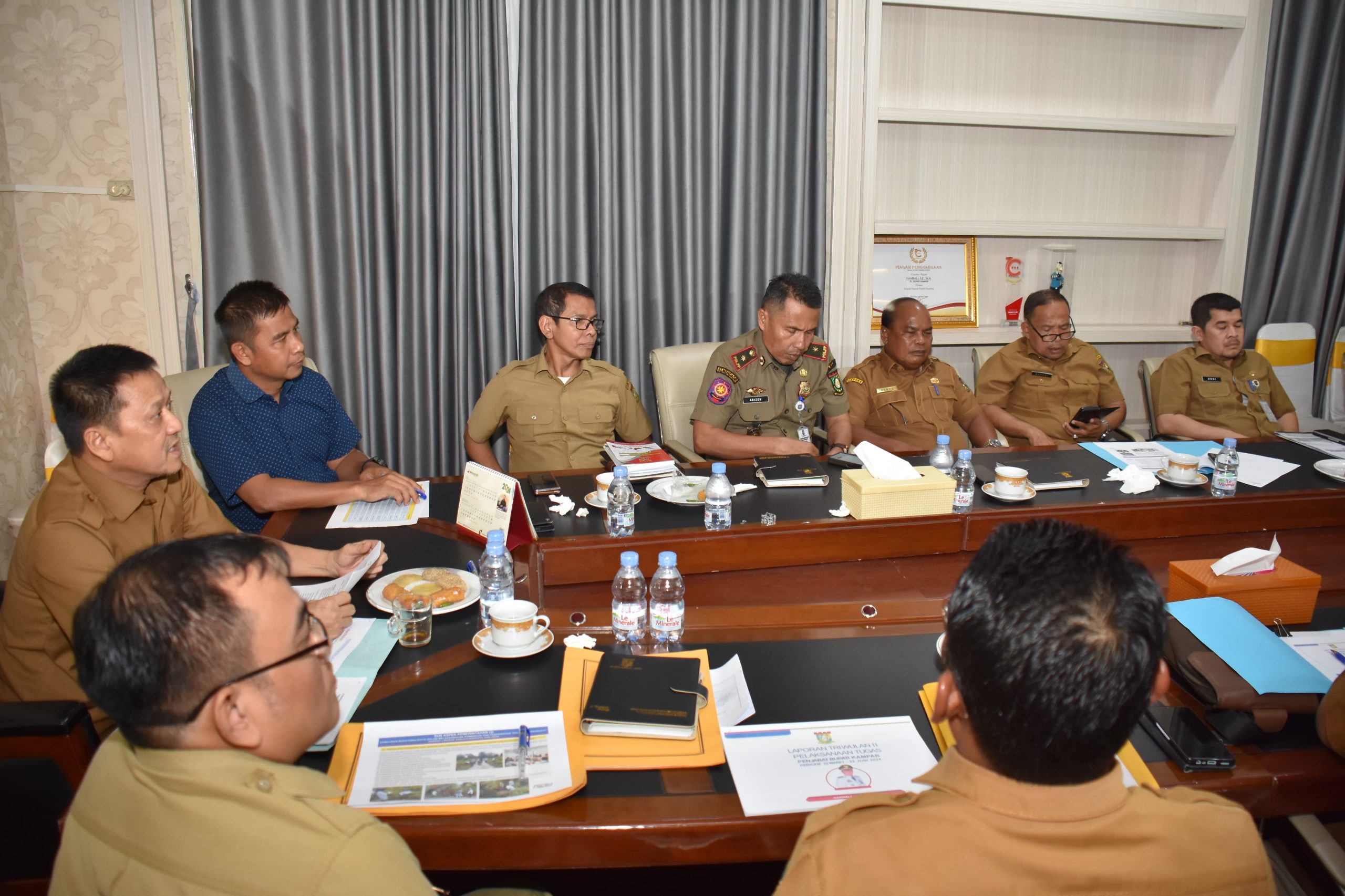 Bangkinang Kota – Pemerintah Kabupaten (Pemkab) Kampar menggelar rapat persiapan penyusunan laporan kinerja triwulan Kedua Penjabat (Pj) Bupati Kampar H. Hambali, SE, MH yang dipusatkan di Rumah Dinas Bupati Kampar, Selasa (25/6/2024).