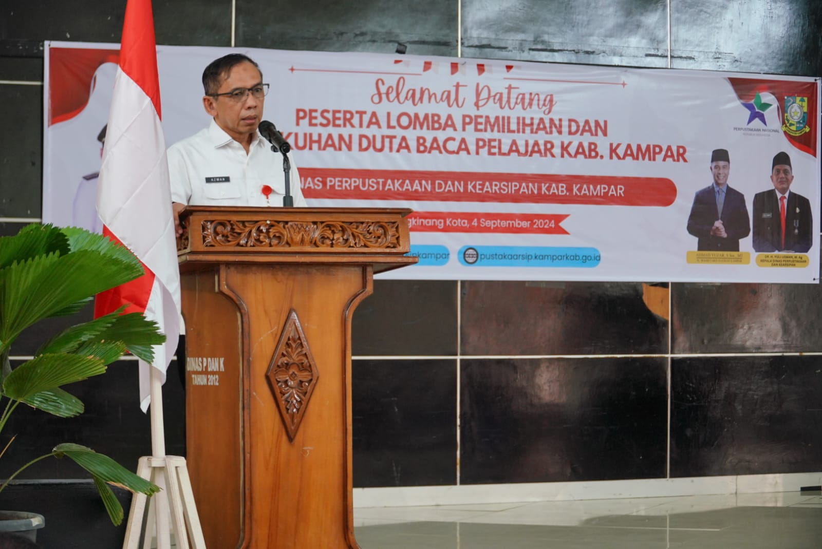 Dalam sambutannya, Asisten III Setda Kampar Azwan menyampaikan pentingnya peran duta baca dalam mempromosikan budaya literasi di kalangan pelajar.