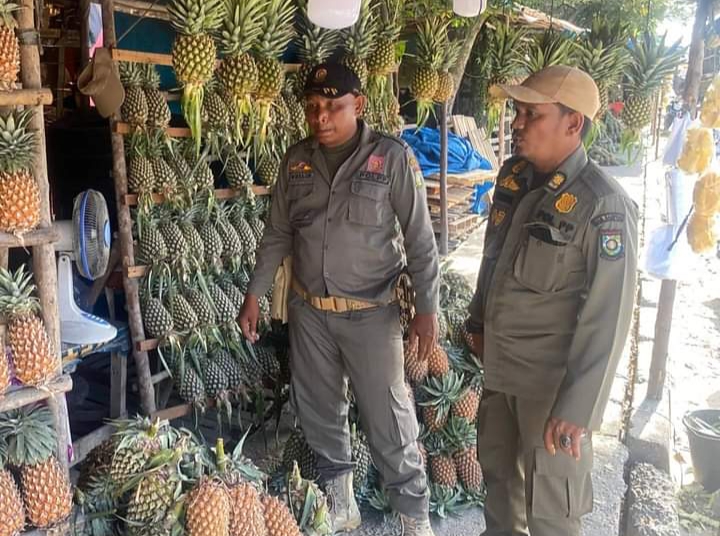 Satpol PP Tertibkan Pedagang Jualan Nanas di Atas Trotoar Kedua Kalinya