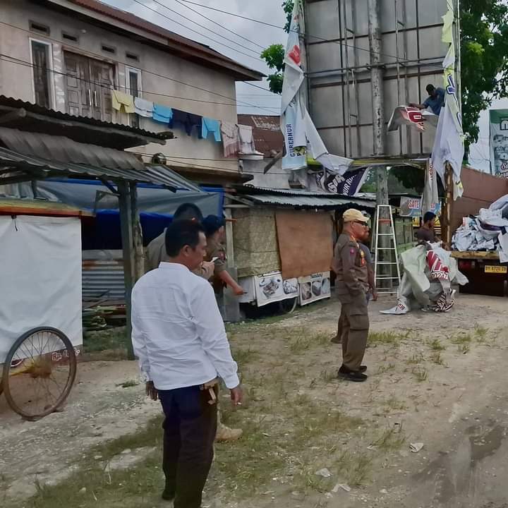 Beritatuan.com, Kampar – Satuan Polisi Pamong Praja (Satpol PP) Kabupaten Kampar laksanakan penertiban terhadap Alat Peraga Kampanye (APK) para pasangan calon Bupati Kampar dan APK pasangan calon Gubernur Senin (25/11/2024).