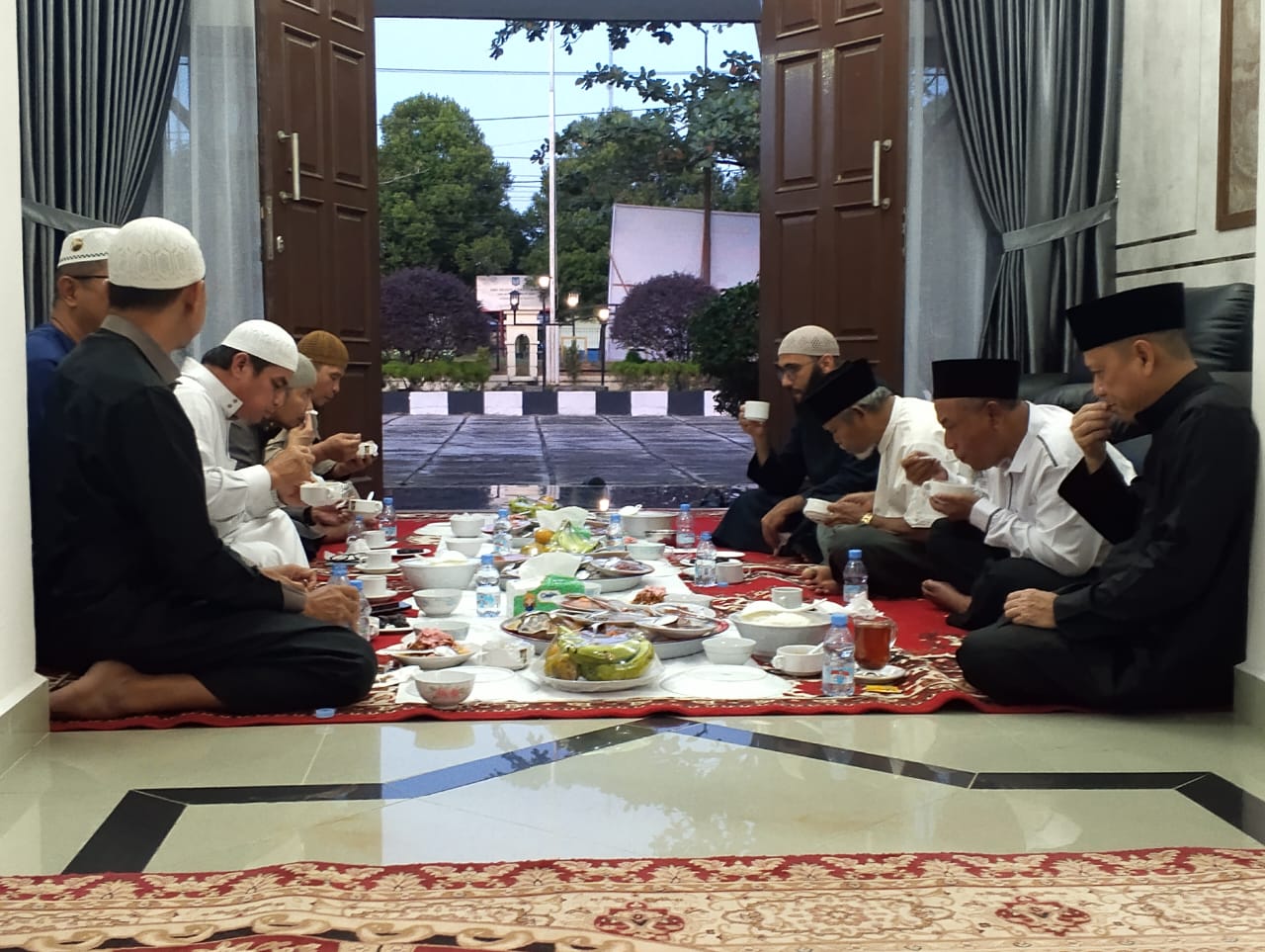 Hambali didampingi sang isteri berserta Ajudan dan Walpri tampak datang menyambut kedatangan sang imam dan rombongan di rumah dinas untuk agenda buka bersama.