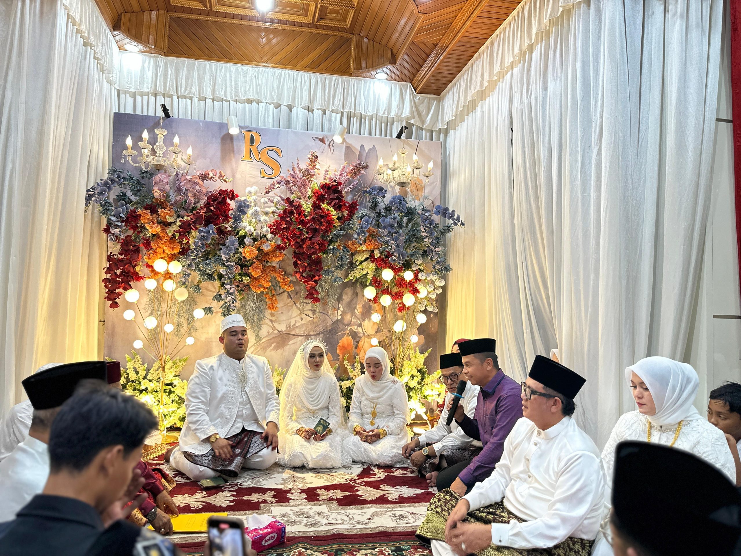 Bupati Kampar H Ahmad Yuzar usai prosesi ijab kabul memberikan nasehat pernikahan kepada pasangan M Reyhan Sabri dan Marshanda Indriyati, pada hari Rabu (09/07/2025) malam, bertempat di kediaman tuan rumah ayah dari M Reyhan Sabri yakni H Basri dan Hj Emma.