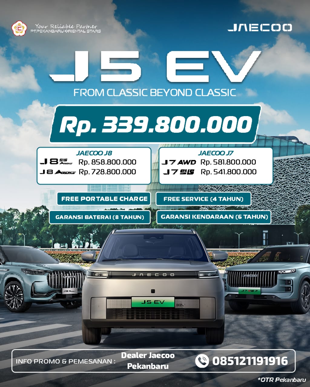 “Kami mengajak masyarakat Pekanbaru untuk memanfaatkan promo ini. JAECOO J5 EV tidak hanya menawarkan kenyamanan dan teknologi, tetapi juga efisiensi jangka panjang,” ujar perwakilan JAECOO Pekanbaru.